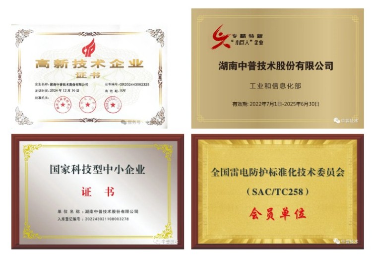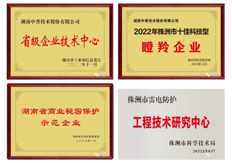 公司是國家高新技術(shù)企業(yè)、國家級“專精特新”小巨人企業(yè)(2022年7月1日-2025年6月30日)、湖南省中小企業(yè)知識(shí)產(chǎn)權(quán)貫標(biāo)單位、湖南省先進(jìn)制造專板掛牌企業(yè)、湖南省商業(yè)秘密保護(hù)示范企業(yè)、株洲市科技型瞪羚企業(yè)、株洲市“中小企業(yè)100強(qiáng)”單位,是中國氣象學(xué)會(huì)雷電防護(hù)委員會(huì)委員單位、中國建筑學(xué)會(huì)雷電委員會(huì)會(huì)員單位、湖南省氣象學(xué)會(huì)常務(wù)理事單位。同時(shí),公司還擁有湖南省住房和城鄉(xiāng)建設(shè)廳頒發(fā)的特種工程(特種防雷)專業(yè)承包資質(zhì)、安全生產(chǎn)許可證。