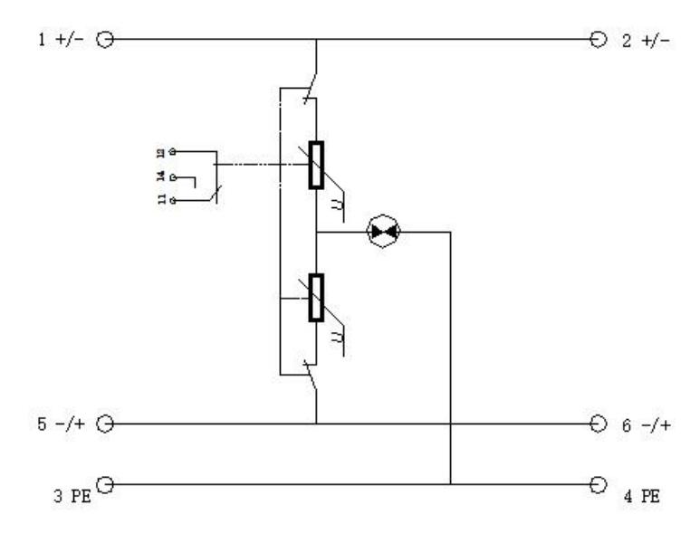 6.5 .防雷器正常工作時,告警干接點為導(dǎo)通狀態(tài);防雷器失效時,狀態(tài)指示變紅色,同時告警干接點為開路狀態(tài)。