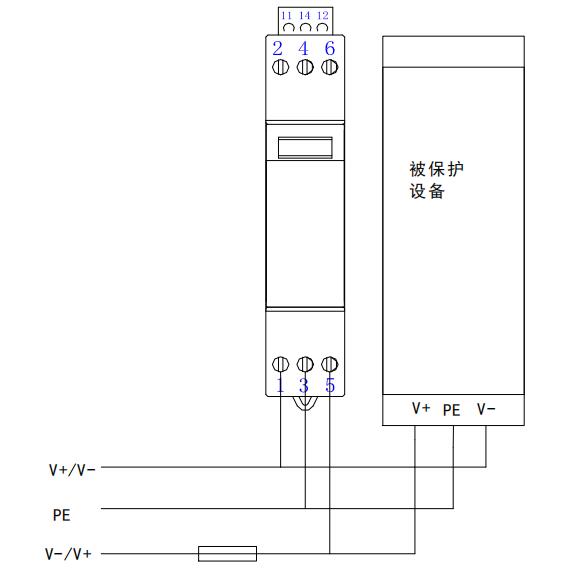 6.1 .DXH06-MP-DS 型電涌保護器可采用最好采用如圖(3- 1A) 所示的串聯(lián)形接線方式,當(dāng)受實際條件所限不易實現(xiàn)串聯(lián)形接線時,也可采用如圖 (3- 1B) 所示的常規(guī)的直接并聯(lián)接線,為實現(xiàn)更好的防護效果,當(dāng)采用直接并聯(lián)接線時,接線應(yīng)盡量短,總長度應(yīng)控制在 0.5m 以內(nèi)。