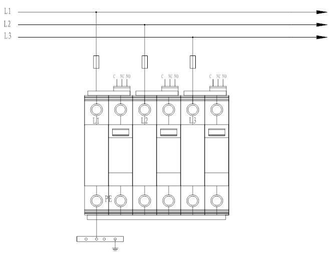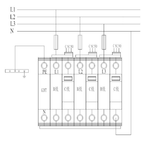 5.5 防雷器前端串接相應(yīng)的熔斷器315A 或空開(kāi)(C63A)。