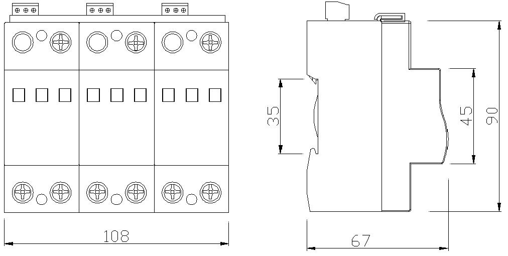 | 內(nèi)部保護(hù)裝置 | 防雷單元內(nèi)置熱脫扣裝置 | |