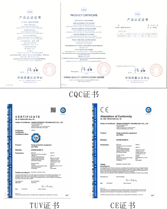 湖南中普生產(chǎn)的專用LED浪涌保護器通過了全面權(quán)威的第三方檢測認證,如CQC、TUV認證、CE認證。本公司鄭重承諾對所有出廠產(chǎn)品的質(zhì)量嚴格把關(guān),并提供24小時全天候的售后服務(wù)保障,為企業(yè)設(shè)備和公共安全保駕護航。